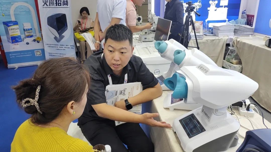 ? ? ? ?因此,展會(huì)現(xiàn)場(chǎng),不僅有來(lái)自醫(yī)院的領(lǐng)導(dǎo),也有自營(yíng)視光機(jī)構(gòu)的負(fù)責(zé)人前來(lái)咨詢、體驗(yàn)。尤其以代表龍達(dá)視光強(qiáng)勁研發(fā)實(shí)力的近視矯治儀、近視治療儀、霧視屏和數(shù)字智能型同視機(jī)最為引人注目。